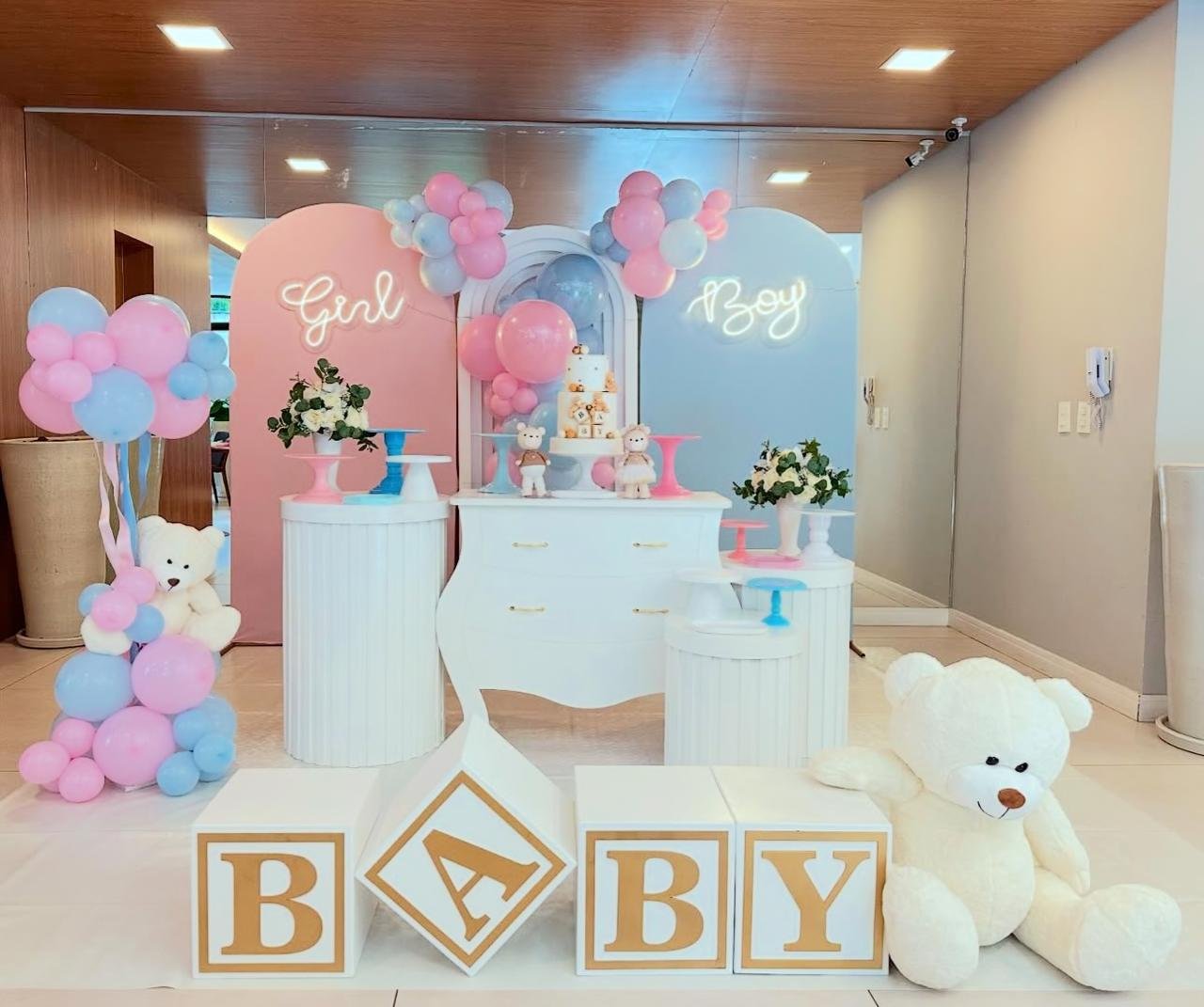 Cada projeto na Magia - Decoração para Chá Revelação começa a partir de R$899 + frete, com pacotes prontos que já entregam toda a emoção desse momento.